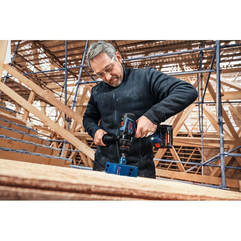 Akku-Bohrschrauber EXSR18V-150, Der EXPERT EXSR18V-150 ist der überragende Bohrschrauber mit einzigartiger Leistung und Kontrolle für verschiedenste Schraub- und Bohrarbeiten. Er ist die perfekte Wahl für extrem schnelle Arbeitsfortschritte dank eines bürstenlosen Motors mit BITURBO-Technologie, außergewöhnlich leistungsstarker EXPERT-Akkus und eines maximalen Drehmoments von 150 Nm. KickBack Control minimiert das Verletzungsrisiko bei blockierendem Bohrer – diese Funktion kann ein- und ausgeschaltet werden. Präzise Electronic Angle Detection sorgt für den richtigen Winkel von langen Schrauben. Dank 13-mm-Metallbohrfutter und Metallgetriebe ist der Bohrschrauber extrem zuverlässig und robust. Er besitzt einen Zusatzhandgriff, der mühelos auf jede Position eingestellt werden kann. Die schnelle Modusauswahl ermöglicht den einfachen Wechsel zwischen Bohren und Schrauben. Der EXPERT EXSR18V-150 liefert optimale Ergebnisse beim Bohren und Schrauben in Holz oder Metall, speziell bei großen Durchmessern, z. B. Lochsägen bis zu 150 mm. Kompatibel mit dem Bosch Professional 18V-System und mit der markenübergreifenden AMPShare-Akku-Allianz. Zusatzhandgriff; Einlage für L-BOXX 136; L-BOXX 136 (1 600 A01 2G0)