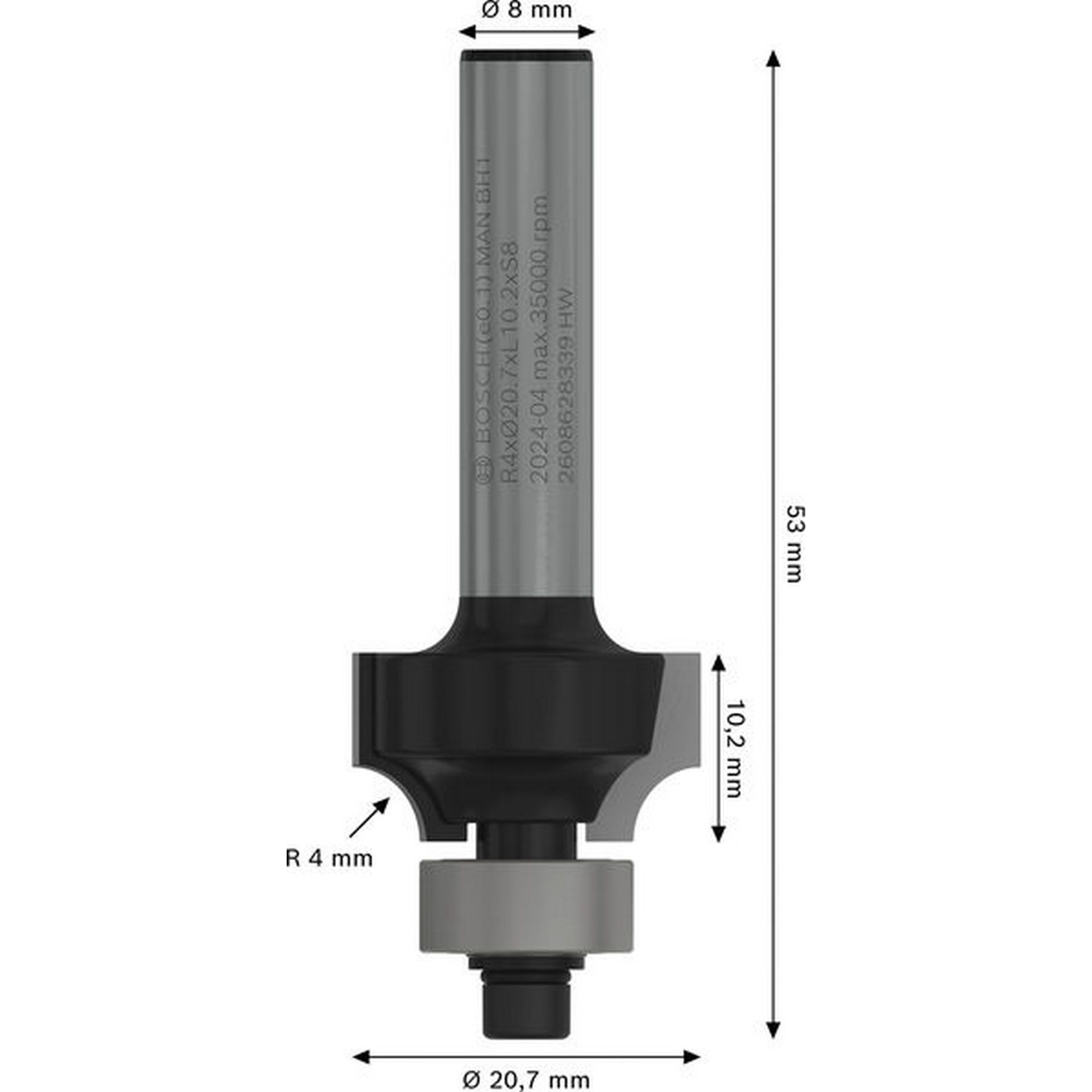Bosch PRO Abrundfräser, R 4, Schaft 8 mm #2608628339