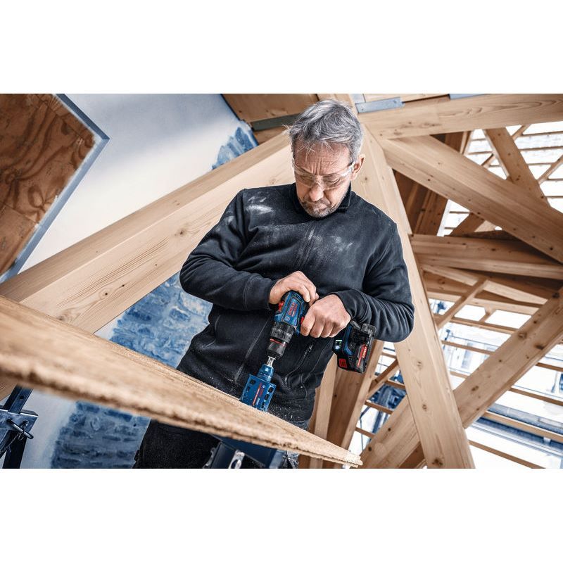 Akku-Schlagbohrschrauber EXSB18V-90, Der EXPERT EXSB18V-90 ist ein leistungsstarker Akku-Schlagbohrschrauber. Der kraftvolle Allrounder mit bürstenlosem Motor liefert herausragende Leistung mit einem weichen Drehmoment von 36 NM und einem harten Drehmoment von 65 Nm, 2.100 1/min und 29.500 bpm für schnelles, effektives Arbeiten in Mauerwerk. Das kompakte Kraftpaket hat eine Kopflänge von 175 mm und ein 13-mm-Metallbohrfutter für mehr Robustheit und bessere Drehmomentübertragung. Die Maschine bietet fortschrittlichen Anwenderschutz: KickBack Control minimiert das Verletzungsrisiko durch das Abschalten bei blockierendem Bohrer. Diese Funktion kann ein- und ausgeschaltet werden. Precision Clutch sorgt für unübertroffene Kontrolle über das Werkzeug, stoppt bei Bedarf das Überrasten und lässt dir die Freiheit, das Werkzeug nach deinen Anforderungen anzupassen. Außerdem werden der Verschleiß der Kupplung und die damit verbundenen Geräusche reduziert. Der EXPERT EXSB18V-90 ist ein überragender Schlagbohrschrauber zum Bohren in Holz mit einem maximalen Durchmesser von 68 mm sowie in Stahl und Mauerwerk mit bis zu 13 mm Durchmesser. 3 x EXBA18V-40 (1 607 A35 1MD); Schnellladegerät GAL 18V-40 Professional (1 600 A01 9RJ); L-BOXX 136 (1 600 A01 2G0); 1/1 L-BOXX-Einlage für Gerät (1 600 A02 K83)