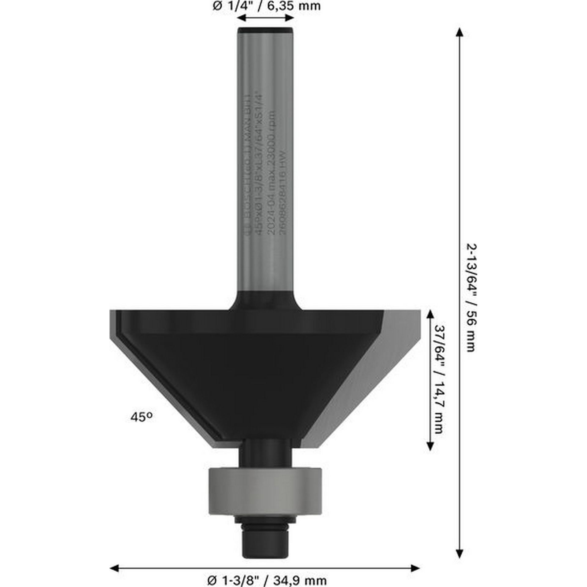 Bosch "PRO Fasefräser, 45°, Schaft 1/4""" #2608628416