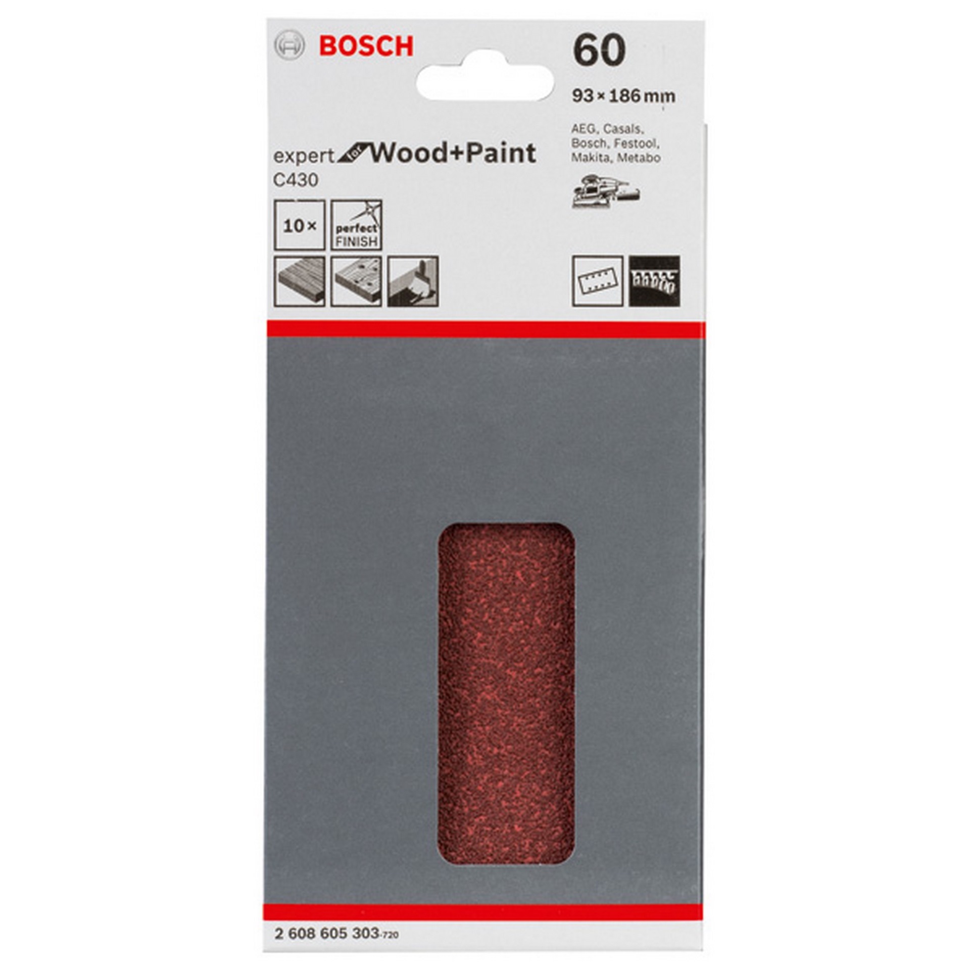 Bosch Schleifblatt C430, 93 x 186 mm, 60, 8 Löcher, 10er-Pack #2608605303