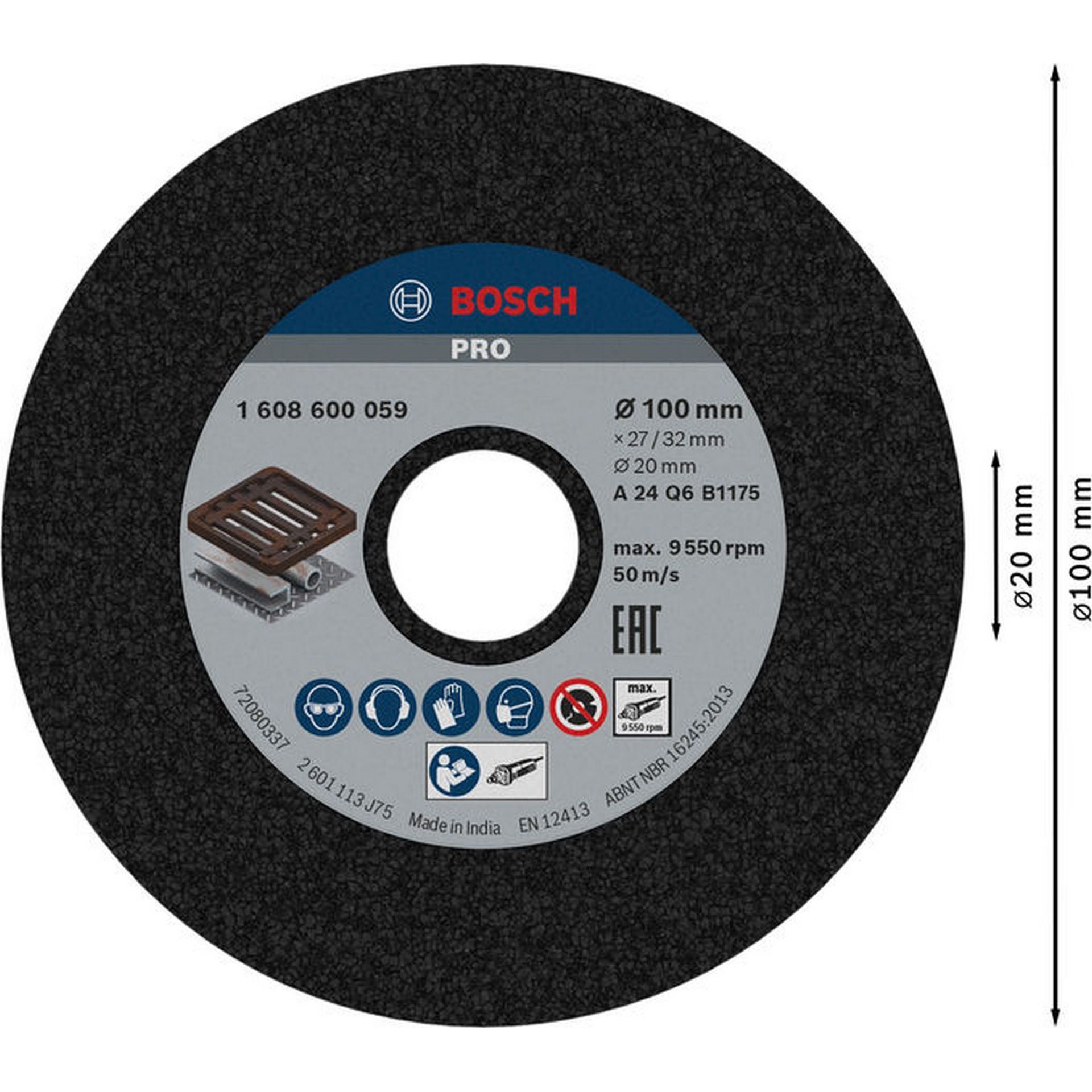 Bosch PRO Metal Schleifscheibe, 100 x 27 x 20 mm, K24 #1608600059
