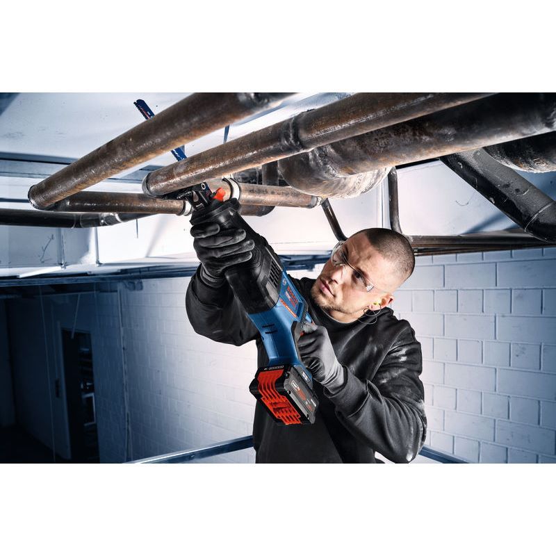 Akku-Säbelsäge EXSA18V-32, Die Säbelsäge EXPERT EXSA18V-32 bietet überragende Leistung, die einem Kabelgerät mit 1300 Watt entspricht, eine Hublänge von 32 mm und 3.000 1/min. Ihr bürstenloser BITURBO-Hochleistungsmotor und das Hochleistungsantriebssystem sind speziell für die extreme Leistung der EXPERT-Akkus ausgelegt. Die Säge bietet fortschrittlichen Anwenderschutz: KickBack Control minimiert das Verletzungsrisiko, wenn das Werkzeug blockiert, und sorgt für weniger zerbrochene oder verbogene Sägeblätter. Die Säge besitzt außerdem ein passives und aktives Vibration Control-System – das schädliche Schwingungen minimiert und die Gefahr von langfristigen Verletzungen verringert – sowie das Stop Control-System, mit dem das Werkzeug automatisch abgeschaltet wird, sobald der Schnitt fertig ist. Diese Säbelsäge besitzt einen großen und bequemen Entriegelungshebel für den werkzeuglosen, schnellen und einfachen Wechsel des Sägeblatts – selbst mit Arbeitshandschuhen. Dank einer 180-Grad-LED werden Arbeitsflächen perfekt ausgeleuchtet. Das überragende Design, das einen ergonomischen Griff mit mehreren Griffpositionen umfasst, ermöglicht komfortables Arbeiten in vielen unterschiedlichen Positionen. Perfektes Werkzeug für das Arbeiten mit verschiedenen Materialien, wie z. B. Metallrohre und -träger, Holz und Ziegelsteine. Kompatibel mit dem Bosch Professional 18V System und der markenübergreifenden AMPShare Akku-Allianz. Dank einer 180-Grad-LED werden Arbeitsflächen perfekt ausgeleuchtet. Das überragende Design, das einen ergonomischen Griff mit mehreren Griffpositionen umfasst, ermöglicht komfortables Arbeiten in vielen unterschiedlichen Positionen. L-BOXX 238 (1 600 A01 2G2); 1/1 L-BOXX-Einlage (1 600 A03 522); 1 x Säbelsägeblatt S 1159 XHM, Progressor for Wood + Metal (2 608 653 787)