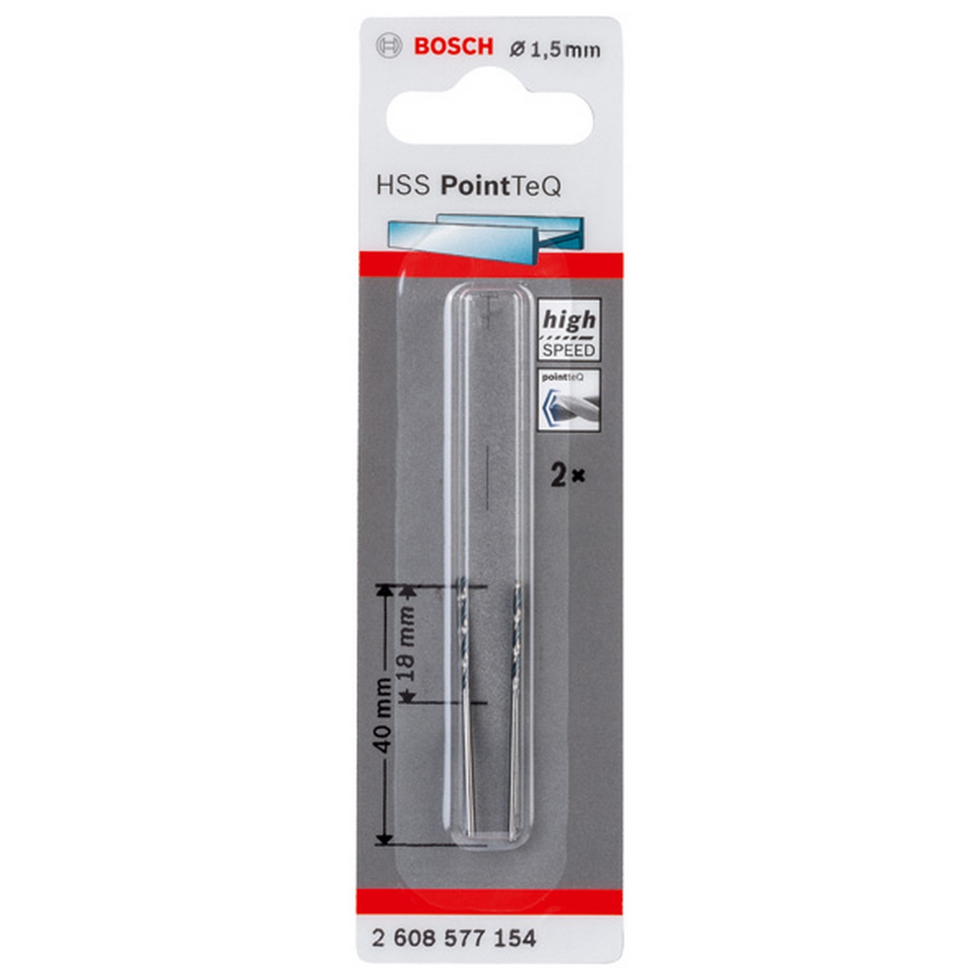 Bosch Metallspiralbohrer HSS PointTeQ, DIN 338, 1,5 mm, 2er-Pack #2608577154