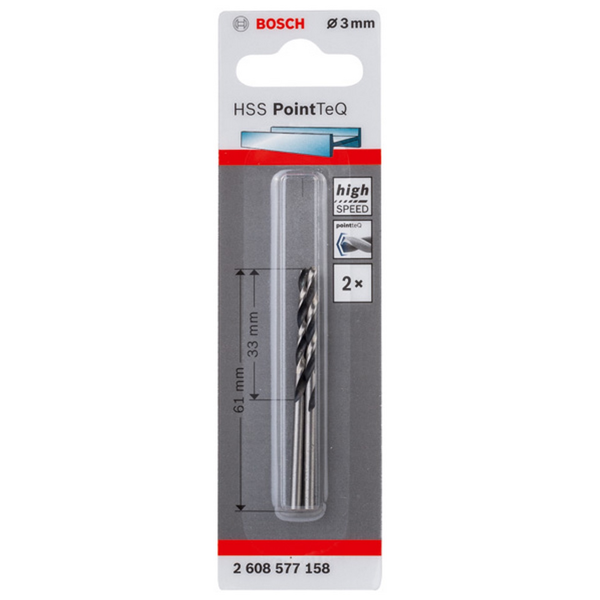Bosch Metallspiralbohrer HSS PointTeQ, DIN 338, 3,0 mm, 2er-Pack #2608577158