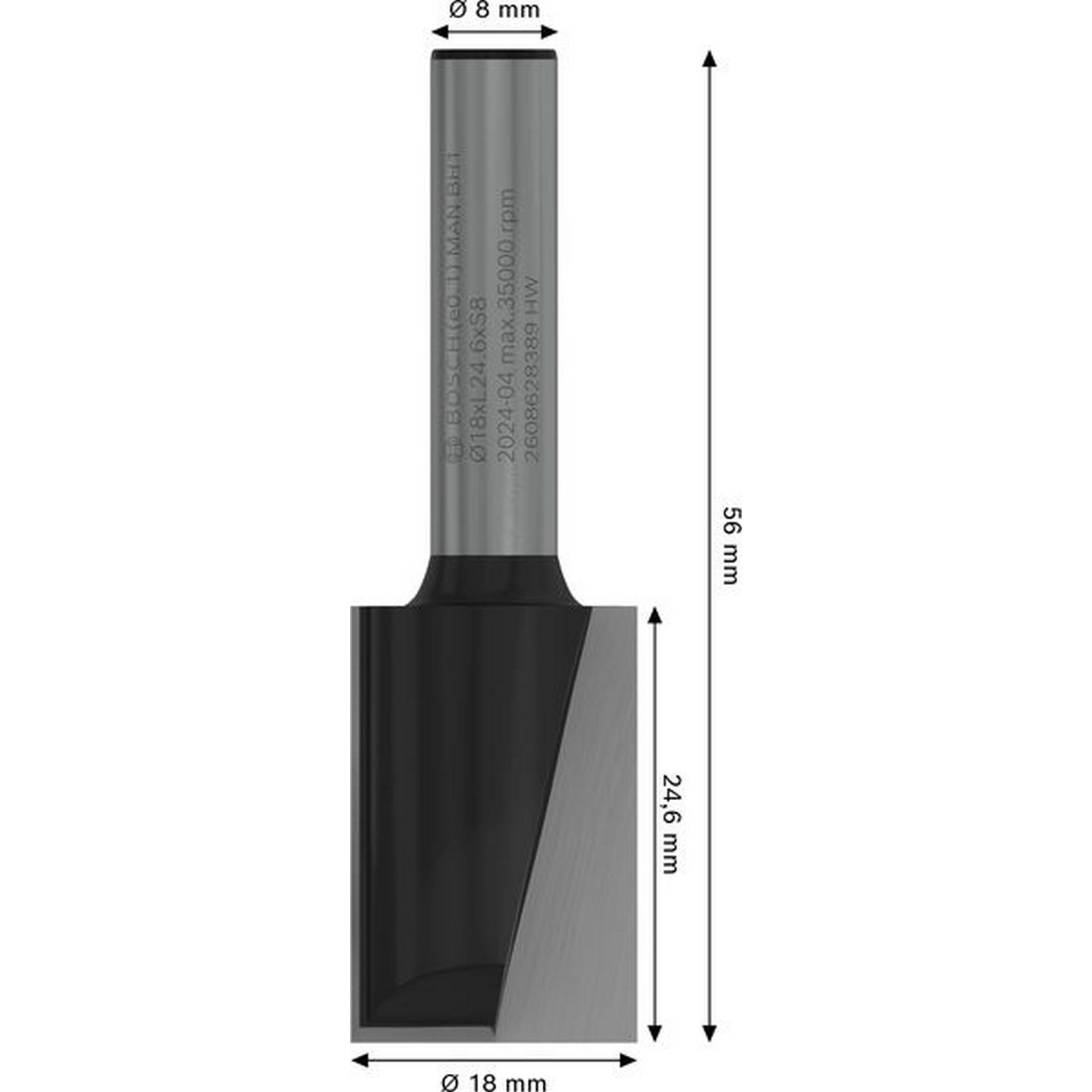 Bosch PRO Nutfräser, zweischneidig, Ø 18 x L 24,6, Schaft 8 mm #2608628389