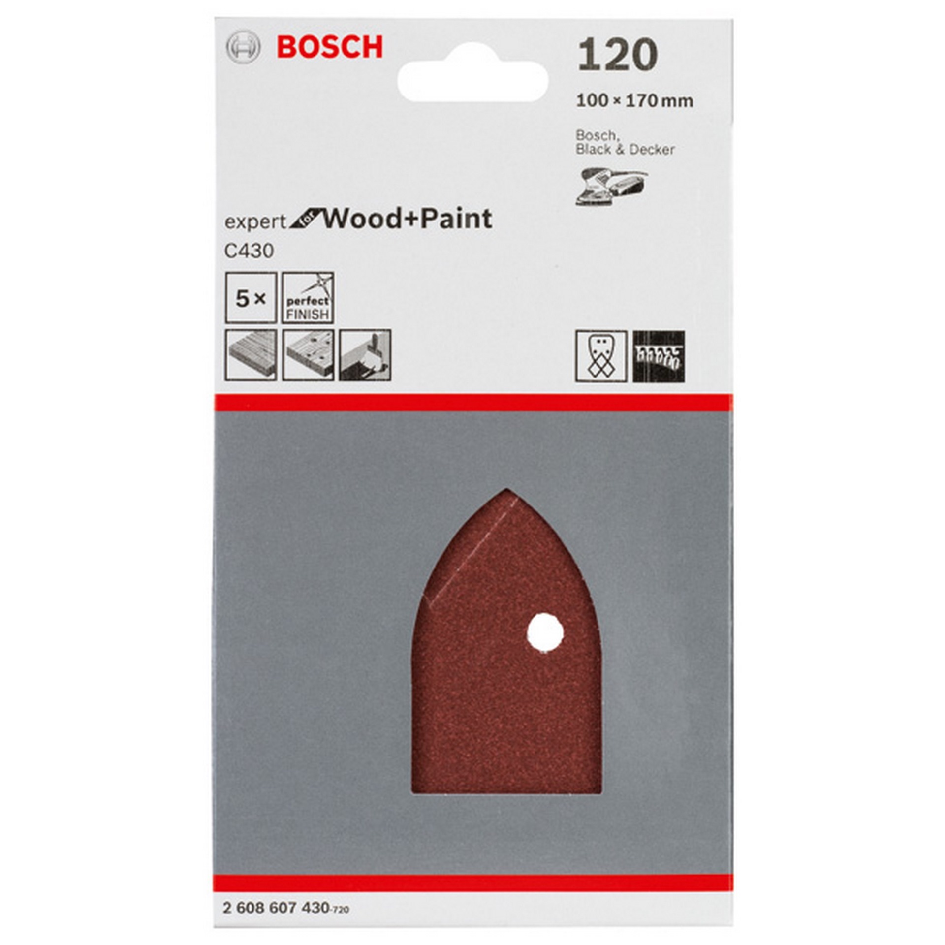 Bosch Schleifblatt C430, 100 x 170 mm, 120, 4 Löcher, Klett, 5er-Pack #2608607430