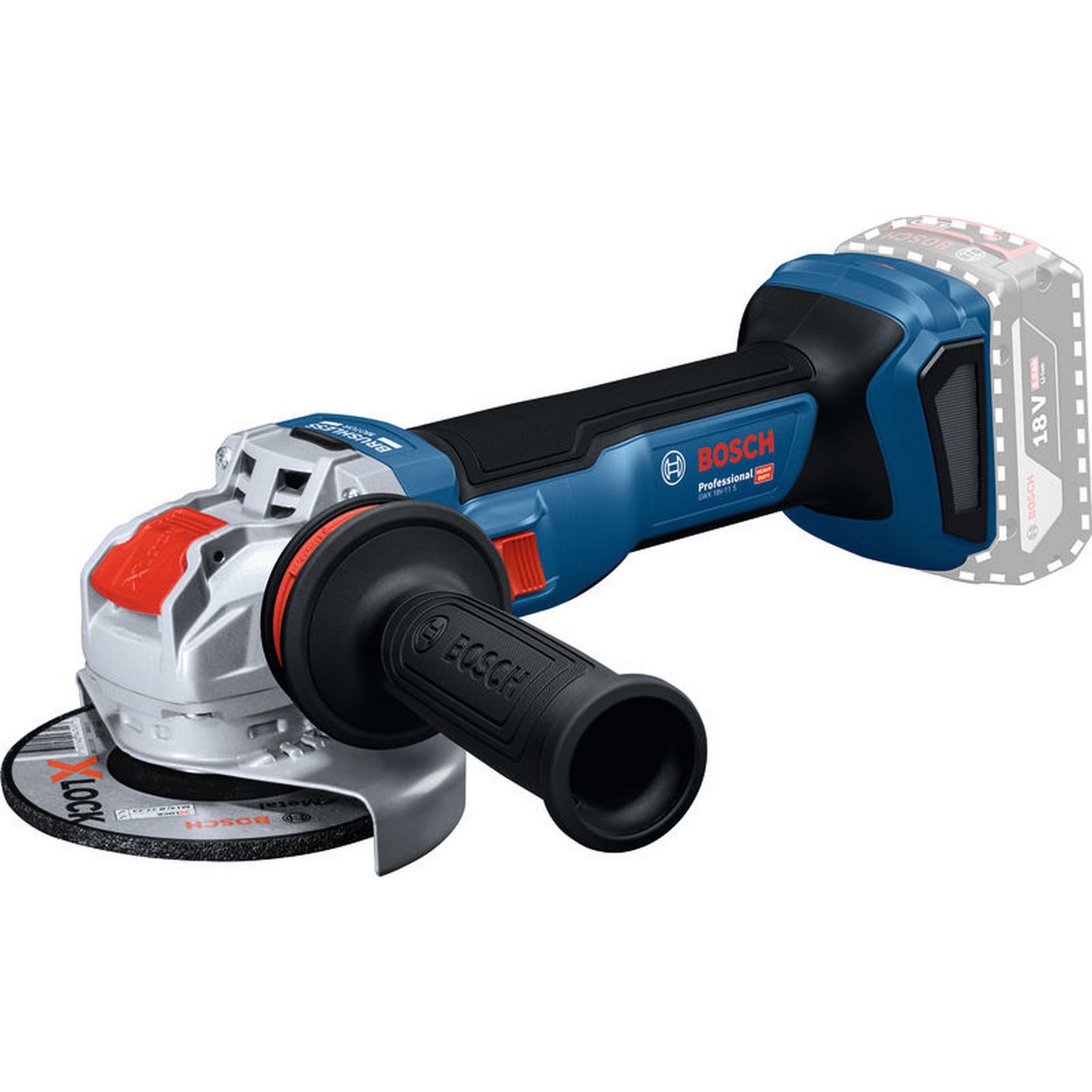 Winkelschleifer mit X-LOCK GWX 18V-11 S, Dieser Winkelschleifer wurde für eine Vielzahl von leichten bis mittelschweren Trenn- und Schleifaufgaben entwickelt und ist ein vielseitiger Allrounder, der für Wartungs- und Reparaturarbeiten sowie für Installationsarbeiten auf der Baustelle geeignet ist. Mit der Leistung eines 1100-Watt-Kabelgeräts und optimierter Überlastkapazität erweist er sich in Industriejobs wie dem Entgraten, dem Entfernen von Rost oder der Wartung und Reparatur von Leitungen als ausgesprochen langlebig. Nutze das Drehrad zur einfachen Auswahl der 6 Drehzahlstufen für die Bearbeitung verschiedener Werkstoffe mit optimaler Kontrolle. Während der Arbeit sorgen der Anti-Vibrationshandgriff und ein schlankerer, längerer Griff für mehr Komfort und weniger Ermüdung, während zahlreiche Sicherheitsmerkmale das Verletzungsrisiko senken. Dieser Winkelschleifer ist eine ausgezeichnete Wahl für Wartung und Reparatur sowie für Installationsarbeiten auf der Baustelle und ermöglicht eine Vielzahl von Anwendungen wie leichte bis mittelschwere Trenn- und Schleifarbeiten wie das Entgraten oder die Wartung und Reparatur von Leitungen. Dank des werkzeuglosen X-LOCK-Systems kann Zubehör blitzschnell gewechselt werden, so dass sich Anwender ganz auf das konzentrieren können, was wirklich wichtig ist: die anstehende Arbeit. Zusatzhandgriff Vibration Control (2 608 900 000). L-BOXX 136 (1 600 A01 2G0). Schutzhaube (1 605 510 365)