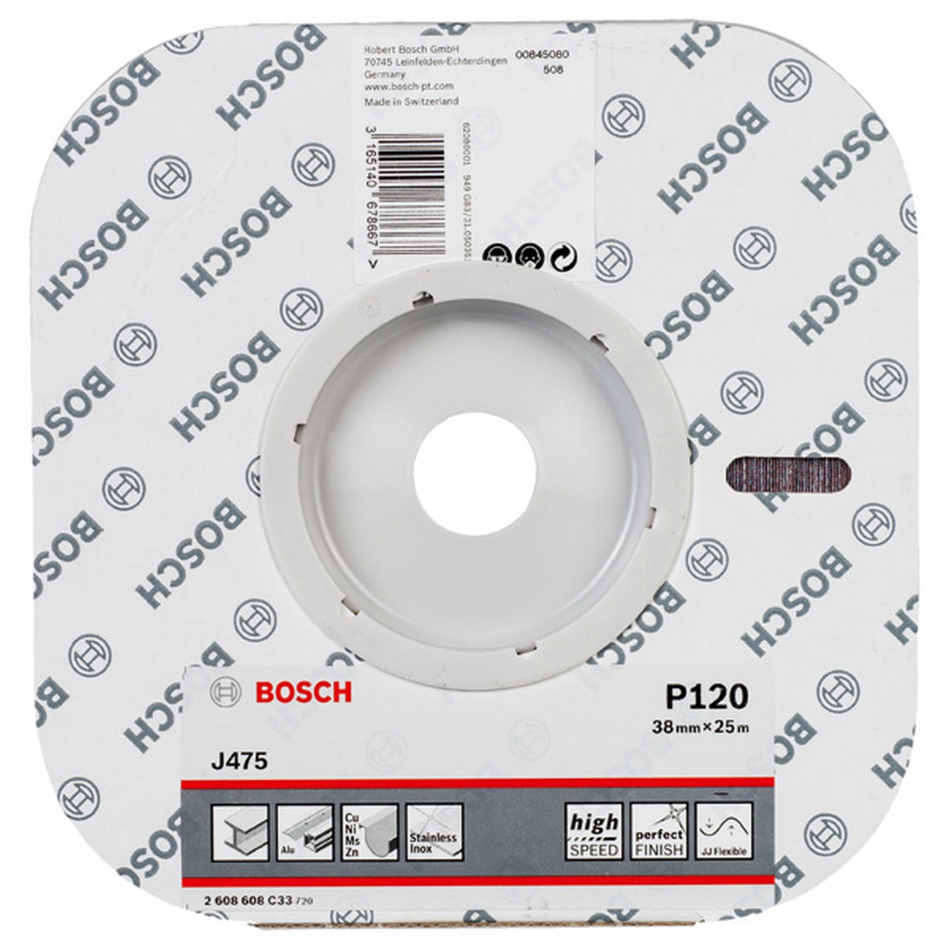 Bosch Schleifrolle J475 Best for Metal, Gewebeschleifrolle, 38 mm x 25 m, 120 #2608608C33